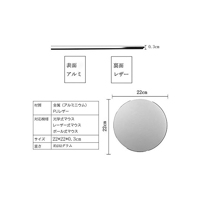 원본상품명: COOLEAD マウスパッド 夏にアルミ合金面 冬にゴム製裏面 ?面使用 滑り止め ?量極薄 低反? 丸形 マウス用 22*22cm