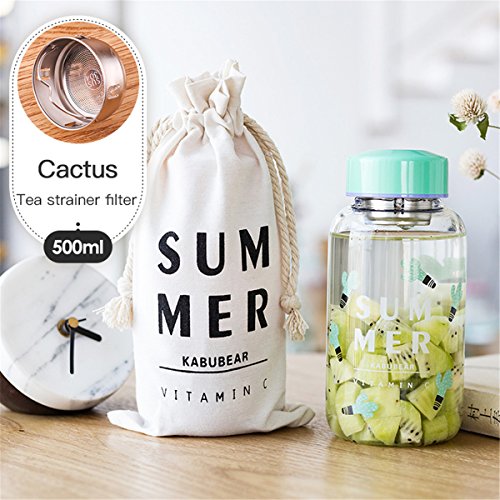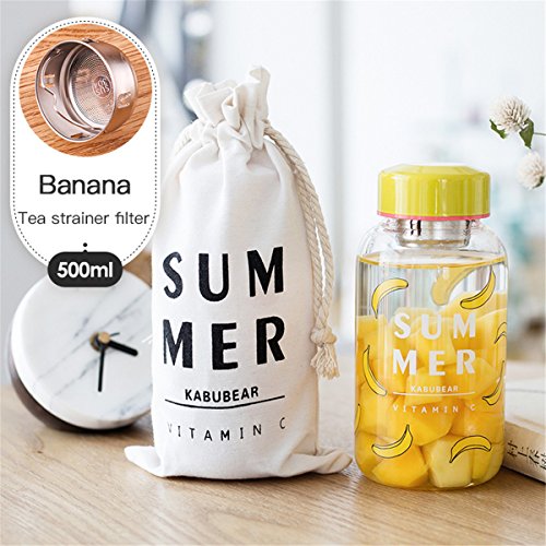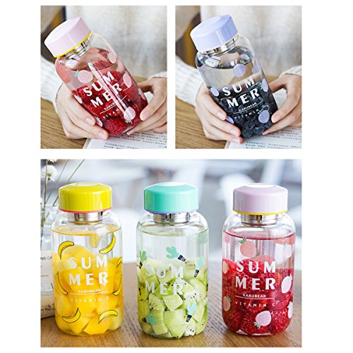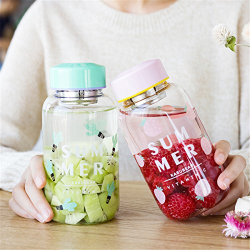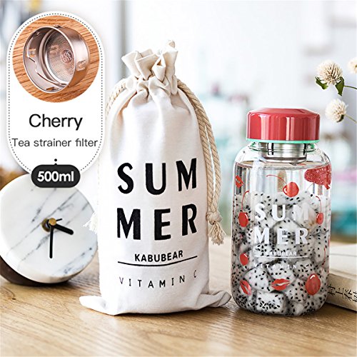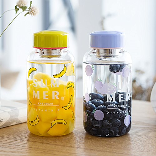 ★CAPACITY: 17oz(500ml), High Borosilicate Reusable Glass Material, BPA Free, Safe for humans & environment. Leakage Proof Design. No Leaking. No Smell.5 pattern to choose: Banana, Cactus, Strawberry, Cherry, Blueberry.