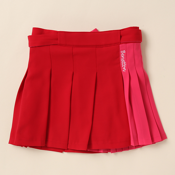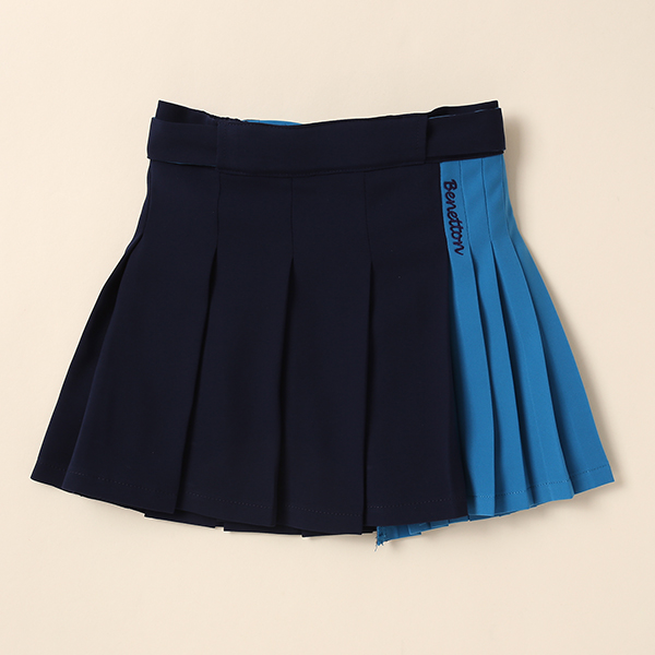 ◆배색칼라의 폭이 다른 플리츠 소재가 매칭된 트렌드한 스커트