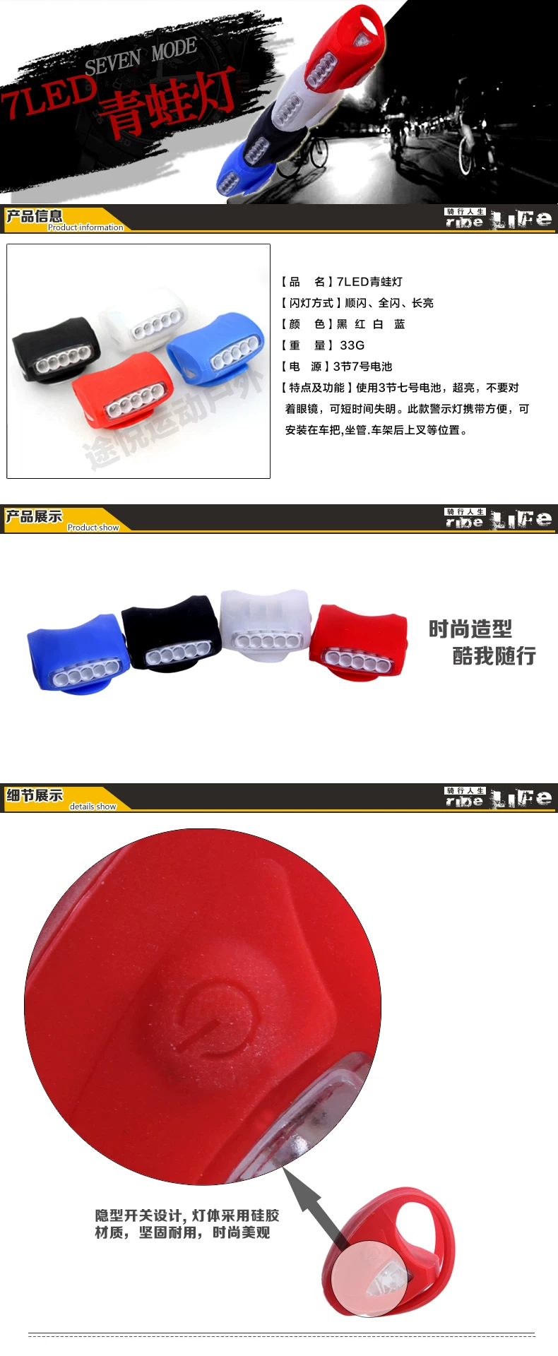 【特点】这个青蛙灯有7个LED,5白色LED+2红色LED 。红色的2个LED在2边,5个白色的LED在