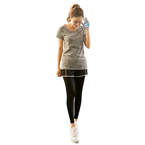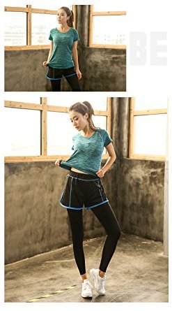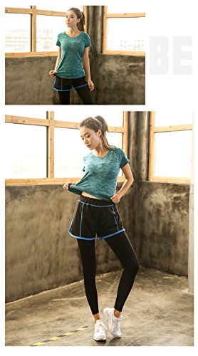 -. Title : レディース 運動着 スポーツウェア セットアップ トップス Tシャツ 短パン スパッツ グレー グリーン ブルー ローズ L LL 3L 4L 5L 大きいサイズ