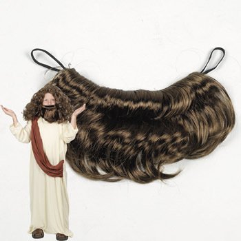 Child's Brown Beard. Adorable on little shepherds and wise men this beard works for grown-ups too. Order several for church Christmas pageants and religious processions. Moustache and 6 in. beard of synthetic fibers attached to 2 1/2 in. elastic straps.