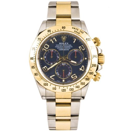 -. Title : 40mm Stainless Steel & 18K Gold Daytona Model 116523 Blue Arabic Dial Inner Bezel Engraving Model