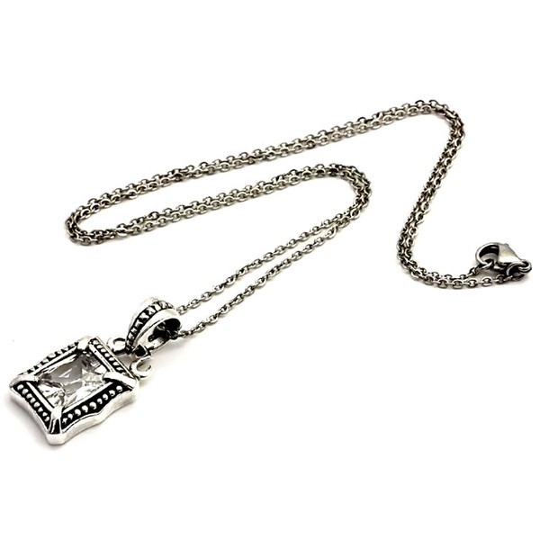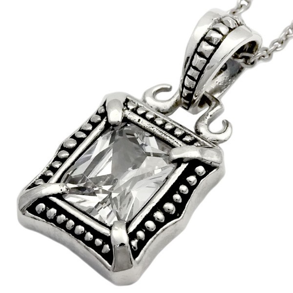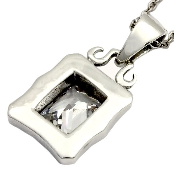 レトロ感を醸し出すRoyal Jokerユートピアペンダント。スクエアカットのホワイトCZ(キュービックジルコニア)に周りをミル打ちで囲い4つの爪でしっかり留めたシンプルなペンダントです。カラー違いでブラックCZもあるのでペアでもつけられます。本物のシルバーだから出せる質感が堪能できるアイテムです。専用のケースが無料で付属するので、プレゼント・ギフトにとってもオススメです。