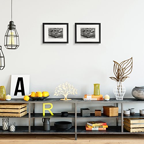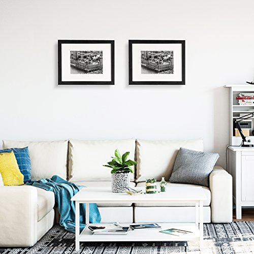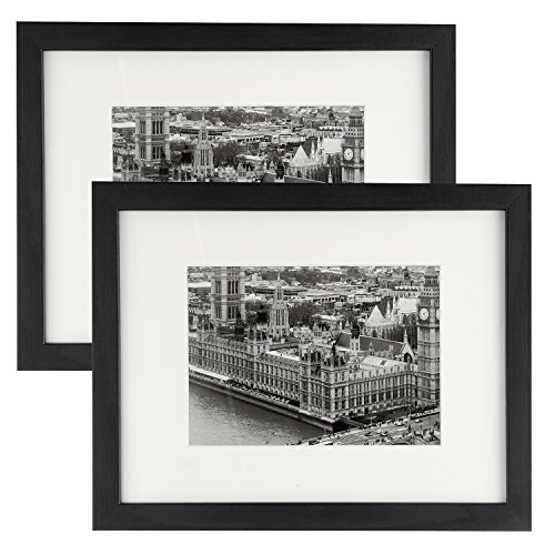 8.5x11 Picture Frame 2 Pack, UnityStar Document Frame Sized 8.5x11 inch without Mat and 5X7 inch with Mat, Wood Photo Frame, Tempered Glass for Tabletop or Wall Hanging, Certificate or Diploma,Black