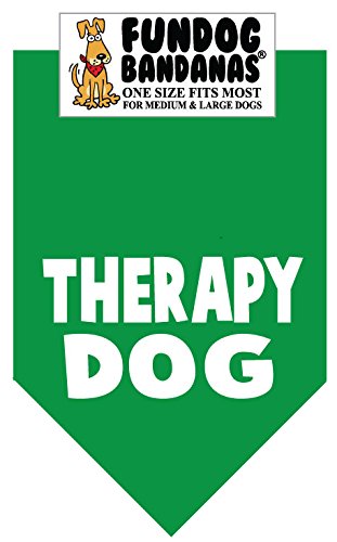 -. Binding : Misc. -. Brand : FunDog Bandanas -. Color : Kelly Green -. EAN : 0083351960360 -. Feature : Cute! / Fun! / Affordable! / Makes a great gift! / 22x22x31inches -. Label : The Dog Perk Corporation -. Manufacturer : The Dog Perk Corporation -. MPN : Fun-6918 -. PackageQuantity : 1 -. PartNumber : Fun-6918 -. ProductGroup : Pet Products -. ProductTypeName : PET_SUPPLIES -. Publisher : The Dog Perk Corporation -. Size : One size fits most for medium to large dogs -. Studio : The Dog Perk Corporation -. Title : BANDANA - Therapy Dog for Medium to Large Dogs - kelly green -. UPC : 083351960360