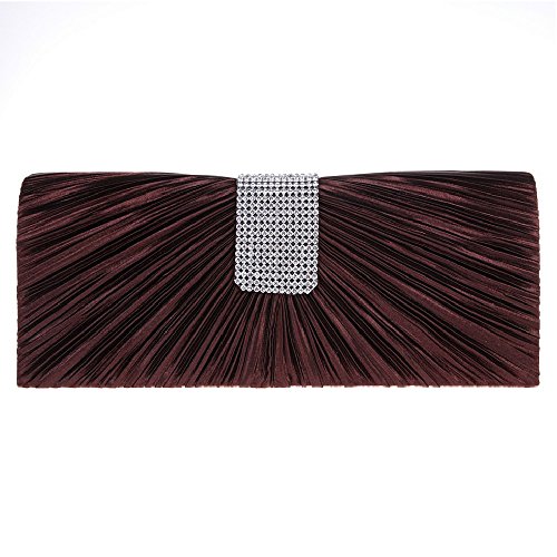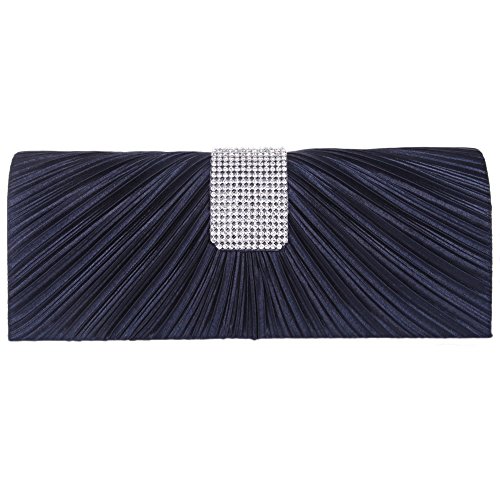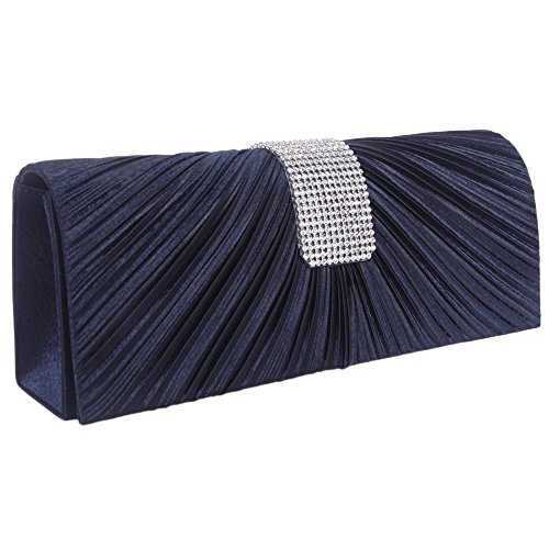 Fawziya Pleated Satin Clutch Purse Crystal Women Evening Handbag-Dark Blue