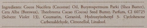 An extremely rich and concentrated butter based on Shea butter, Cocoa butter and Beeswax.