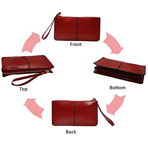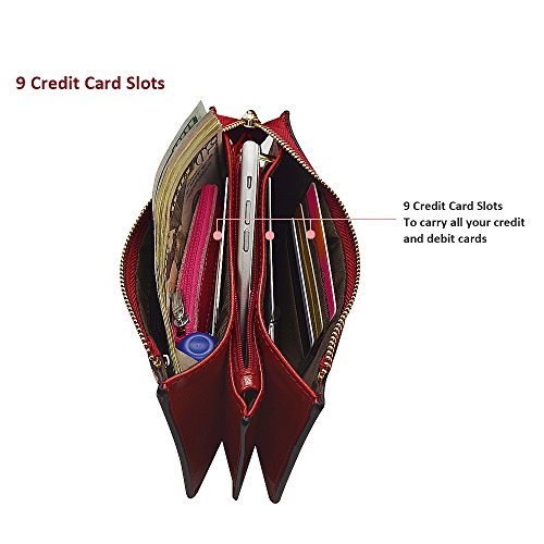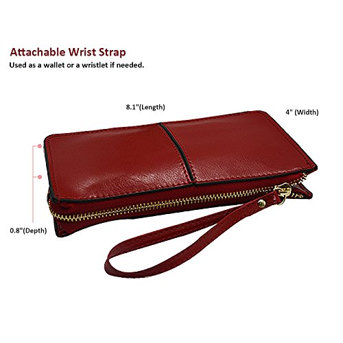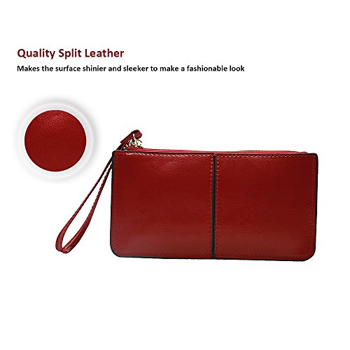 Belfen® [Soft leather] [Jester Red] Smartphone zipper wallet organizer with Credit Card Holder/Cash pocket/Wristlet- [Up to 6x 3.1*0.5 Inch Cellphone]
