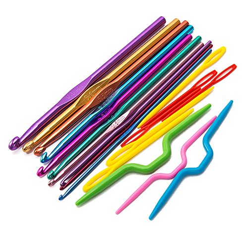 - Excellent Crochet Hooks: Made of aluminum material with size mark in middle, these crochet hooks are 10 colour hooks-2.0/2.5/3.0/3.5/4.0/4.5/5.0/5.5/6.0/6.5mm; and 12 silver hooks-0.6/0.75/0.85/0.9/1.0/1.1/1.25/1.4/1.5/1.6/1.75/1.9mm. Each hook has smooth finish so would not snag or tear the yarn while knitting
