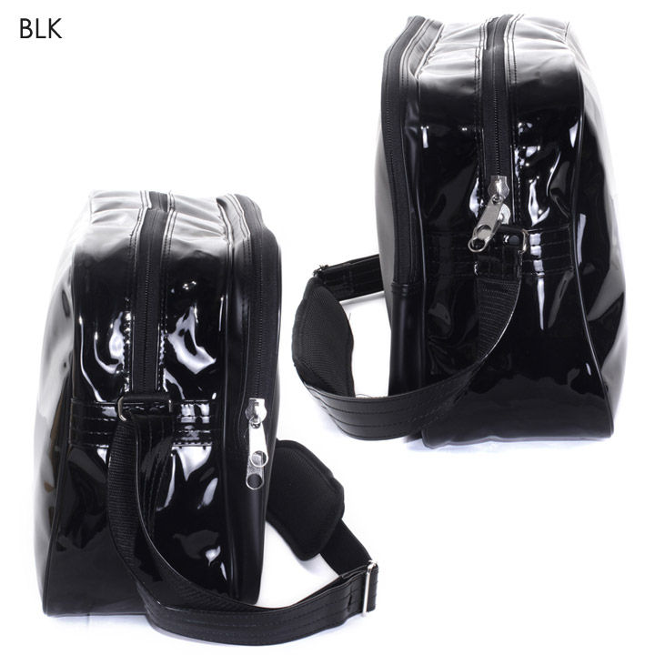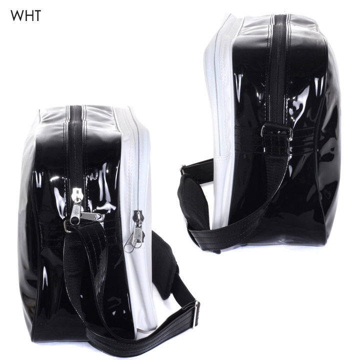 荷物の多い通学から部活動などで活躍するエナメルスポーツショルダーバッグです。底面には地面に置けるような仕様になっていて、荷物の出し入れも簡単にでき、大きく開閉ができるメインポケット内には頑丈な素材のプレート付きで、内側からも底面の補強ができます。飽きの来ないブラック&ホワイトのシンプルなカラーリングで、デザイン性でも永く愛用ができる点もオススメポイントです。また、毎入荷で売り切れが続出する人気アイテムなので、お早めのチェックを!!