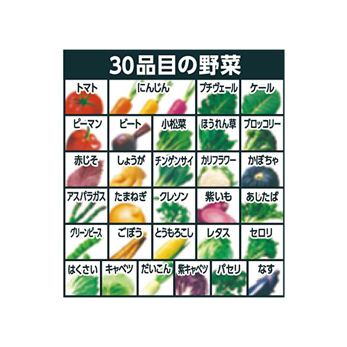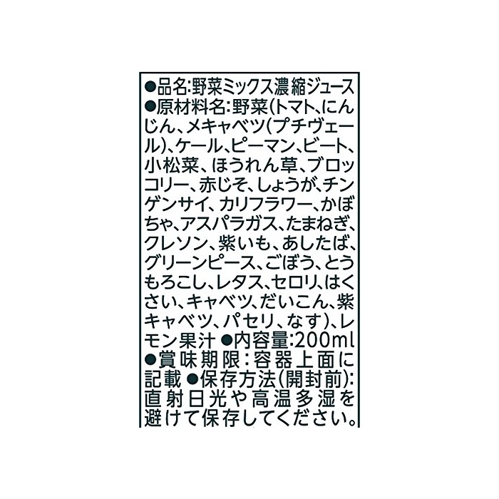 원재료:토마토(미국,칠리,터키,포루투칼)고, (당근)인삼(미국,오스트레일리아,일본,뉴질랜드)고, 자(당근)인삼(칠리,터키,프랑스)고, 황(당근)인삼(뉴질랜드)고, 《메캬베츠》(쁘띠 베일)(칠리,일본)고, K《루》(네델란드,독일,폴란드)고, 적피망(칠리,헝가리,폴란드)고, 시금치(네델란드,독일,폴란드)고, 《모로헤이야》(이집트)고, 브로콜리(칠리)고, 양상추(일본)고, 샐러리(칠리,일본)고, 하 # 것이지만(대만)고, 자양배추(미국)고, 빨강 하 #(대만)고, 읽 #(일본)고, 친 겐 코뿔소(일본)고, 콜리플라워(에콰도르,과테말라,멕시코)고, 《구레손》(칠리,일본)고, 파슬리(칠리,일본)고, 호박(칠리)고, 아스파라거스(미국,칠리)고, 타마 파(네델란드)고, 비트(네델란드,일본,폴란드)고, 무우(일본)고, 평지의 변종(일본)고, 보라색 있도(일본)고, 아 했으면(인도네시아)고, 서는 냄새가 나다(칠리)고, 한다(일본)고, 그린 피스(미국,뉴질랜드)고, # 것이다(대만,일본)고, 레몬 과즙(아르헨티나,이탈리아,남아프리카)산지는 2017/3/1현재,사용할 가능성이 있는 산지를 게재 하고 있습니다. 계절 등에 따라서 최적인 산지인 것을 편성해 사용하고 있습니다.
