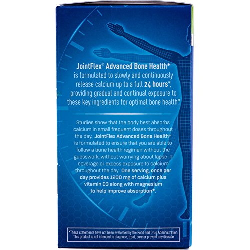 ReleaseDate : 2017-08-17 Studio : Emerson Healthcare LLC for Concepts in Health, Inc Publisher : Emerson Healthcare LLC for Concepts in Health, Inc Binding : Health and Beauty Product Description JointFlex Advanced Bone Health offers a unique slow release formulation designed to enhance bone performance by continuously releasing calcium and vitamin D3 throughout the day. Studies have shown that calcium is more efficiently absorbed in gradual exposure of small steady doses, with potentially less risk of excess calcium often associated with traditional high potency supplements. The formula contains 1200 mg of elemental calcium per dose (2 tablets), combined with a proprietary blend of additional nutrients such as calcium carbonate, citrate, vitamin D3, and magnesium that further enhance performance. 0
