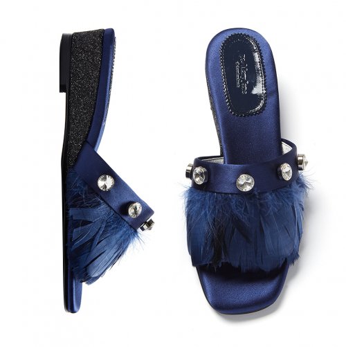 은은한 광택감의 새틴소재와 리얼깃털로 백조의 날개모양을 연상 시키는 로맨틱 스타일의 뮬입니다.