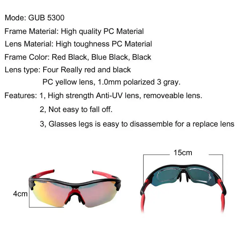 Replaceable Lens:1pcs colorful +1pcs Polarized +1pcs intensify lens
