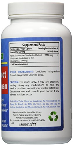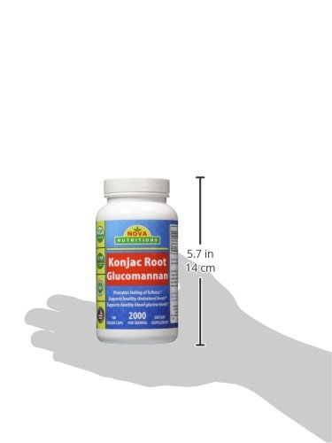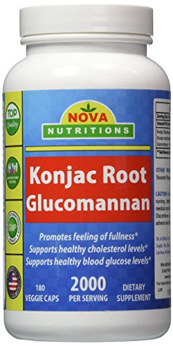 -. Binding : Health and Beauty -. Brand : Nova Nutritions -. EAN : 0732363270027 -. Feature : Promotes feeling of fullness* / Supports healthy cholesterol levels* / Supports healthy blood glucose levels* / Supports appetite control and healthy weight management and Supports digestive health* / Konajc Root Glucomannan 2000 mg per serving -. IsAdultProduct : 0 -. Label : Nova Nutritions -. LegalDisclaimer : * These Statements have not been evaluated by the Food and Drug Administration. This Product is not intended to diagnose, treat, cure or prevent any disease. -. Manufacturer : Nova Nutritions -. NumberOfItems : 1 -. ProductGroup : Health and Beauty -. ProductTypeName : HEALTH_PERSONAL_CARE -. Publisher : Nova Nutritions -. Studio : Nova Nutritions -. Title : Konjac Root 2000 mg per serving 180 Vcaps by Nova Nutritions (Also Known as Glucomannan root) -. UPC : 732363270027