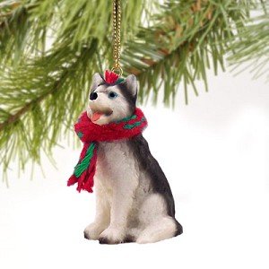 Siberian Husky Black and White with Blue Eyes Miniature Ornament