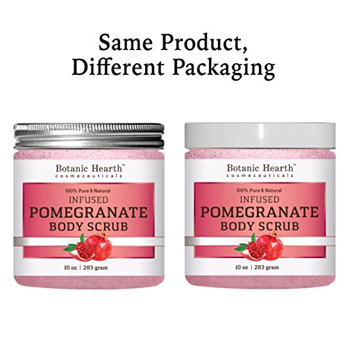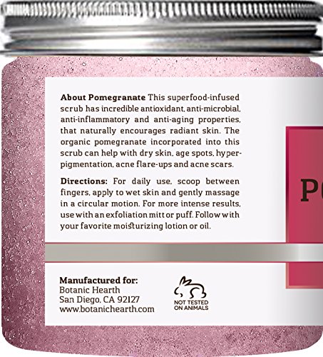 Botanic Hearth Super Pomegranate Infused Body Scrub; all natural fragrance; not tested on animal; made in USA