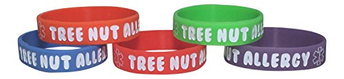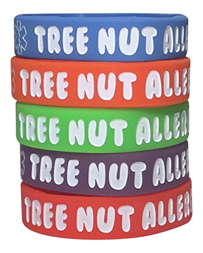 Tree Nut Allergy Bracelet Kid's Silicone Medical Alert Band (Pack of 5) Red, Orange, Blue, Purple, Green (6 inch)