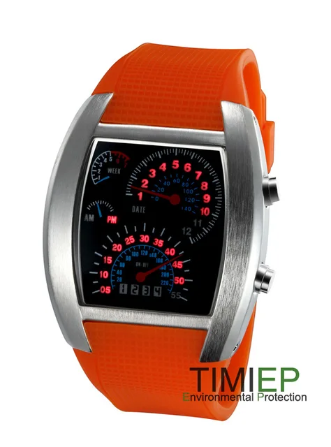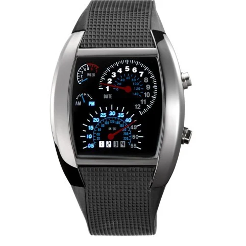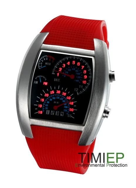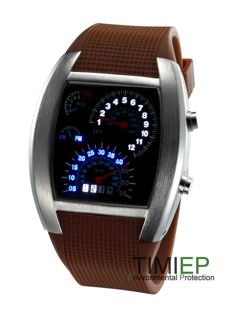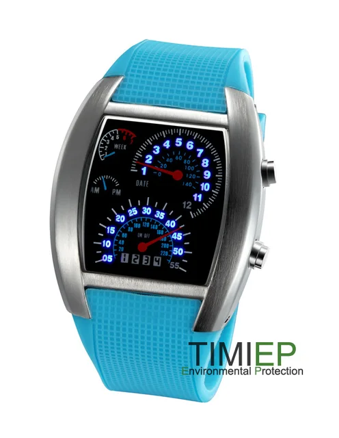 | [해외]Tvg 새로운 7 색 멋진 패션 디자인 자동차 블루 led 빛 도트 매트릭스 남성 시계 다이빙 |