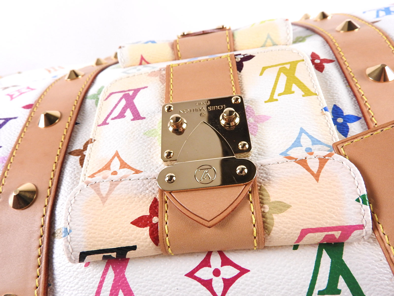 Monogram Multicolor Canvas: Barely used feeling. Slight stains. Discoloring in the outside pockets as the picture. Leather: Barely used feeling. Slight wrinkles and tanning. |
