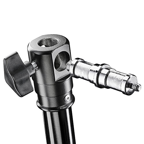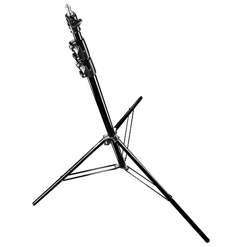 Lampenstativ standfest und mit Luftdampfung in jeder Sektion fur langsames und sicheres Absenken, Kugelkopf und Stativgewinde, auch an normalen Kamerastativen nutzbar