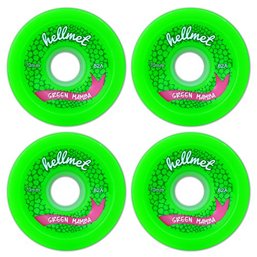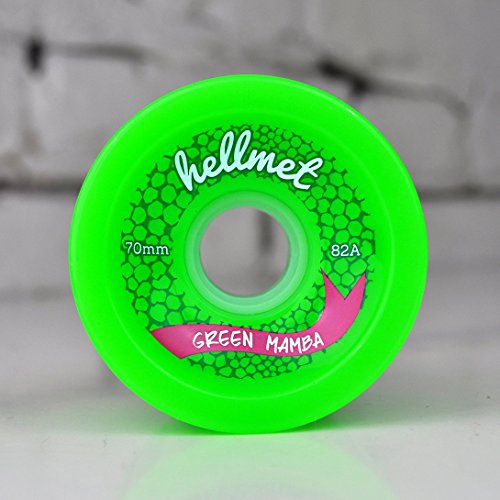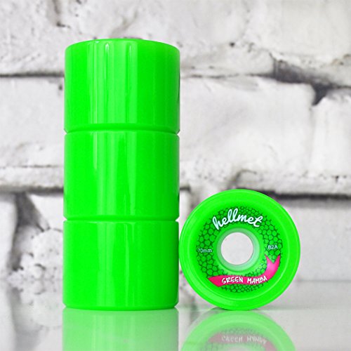 Green Mamba Longboard Rollen 70mm von Hellmet Diese perfekte Cruiserrolle bedient dich in allen Belangen und bietet dir den besten Kompromiss, den dir Allroundrollen bieten können. Sie sind supergrippig, superschnell, weisen ein gutes Slideverhalten auf und halten trotzdem perfekt die Spur. Mit einer Härte von 82A und puren Urethan sorgen sie für vorhersehbare Slides und zum Anderen für einen smoothen Run selbst auf schlechten Untergründen.