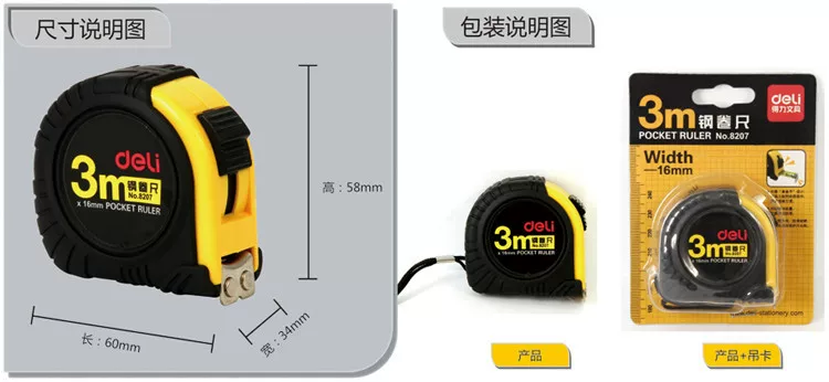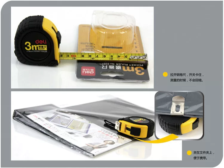 产品正面功能展示示意图其他角度产品功能展示图产品细节展示示意图尺带特点说明产品尺寸标注及包装展示图产品实际使用展示