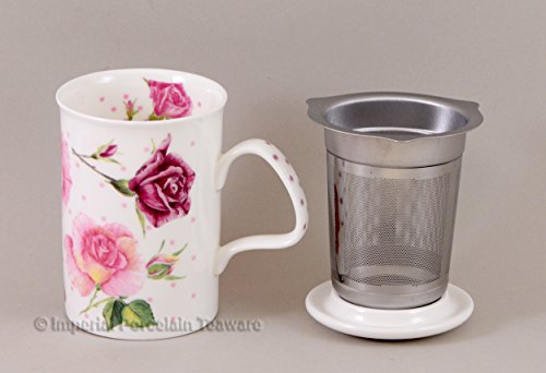 -. Brand : Roy Kirkham and Sons -. Color : white, pink, red, green -. EAN : 0701748601893 -. Feature : Decor is Rose Du Temps with Dots from Roy Kirkham / Beautiful Bone China English Teamaker / 10oz Lancaster Mug with 18/8 stainless steel infuser / Lid can be used as a drip catcher for the Infuser / Fine Bone China Imported From England -. Label : Roy Kirkham -. Manufacturer : Roy Kirkham -. Model : RDT1008 -. PackageQuantity : 1 -. ProductGroup : Kitchen -. ProductTypeName : KITCHEN -. Publisher : Roy Kirkham -. Size : 10 OZ -. Studio : Roy Kirkham -. Title : Roy Kirkham Rose Du Temps Infuser Mug & Lid-Dot -. UPC : 701748601893