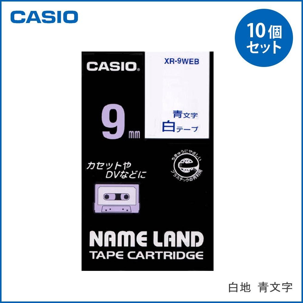 「ネームランド」用テープカートリッジです。デスクまわりの整理に使える9mm幅。 製造国:中国 素材・材質:樹脂 商品サイズ:テープ:長さ8m、幅9mm(1個あたり) 仕様:【色】テープ:白、文字:青 セット内容:10個セット ※サプライヤー直送品【商品名】CASIO カシオ ネームランドテープ9mm幅 (白地/青文字) XR-9WEB ×10個セット