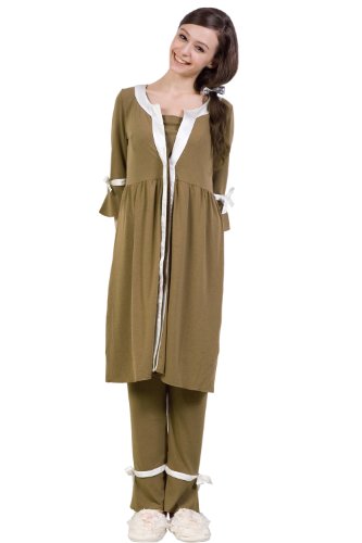 -. Title : Sweet Mommy シルクリボンパイピング ナイティ 上下パジャマ 授乳レイヤー 3点セット やわらかコットン ベルスリーブ ワンピース風 長袖 前開き 入院準備 産前産後 授乳服