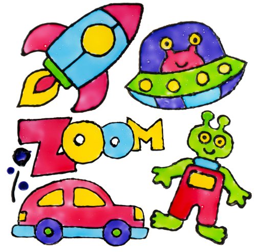 Studio : ALEX Toys Publisher : ALEX Toys Binding : Toy Product Description ALEX Toys Artist Studio Window Sticker Art ? Zoom lets young one's make colorful stickers for their windows, mirrors and even drinking glasses! Designs of robots, cars, aliens, rockets and much more to make and trace. Peel them up and stick them down again! Includes 5 colors of sticker glue (0.18oz. each), outliner glue (0.67oz.), pattern sheet, plastic worksheet and easy instructions. Recommended for children 6 years of age and older. 0