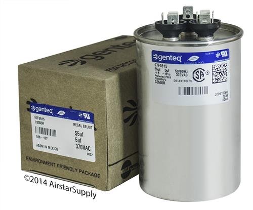Genteq - 55 + 5 uF MFD x 370 VAC GE Industrial Replacement Dual Capacitor Round # C3555R / 97F9815
