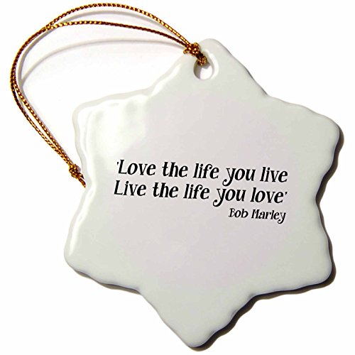 3dRose LLC orn_163993_1 Porcelain Snowflake Ornament, 3-Inch, "Love The Life You Live Live The Life You Love Bob Marley Quote"