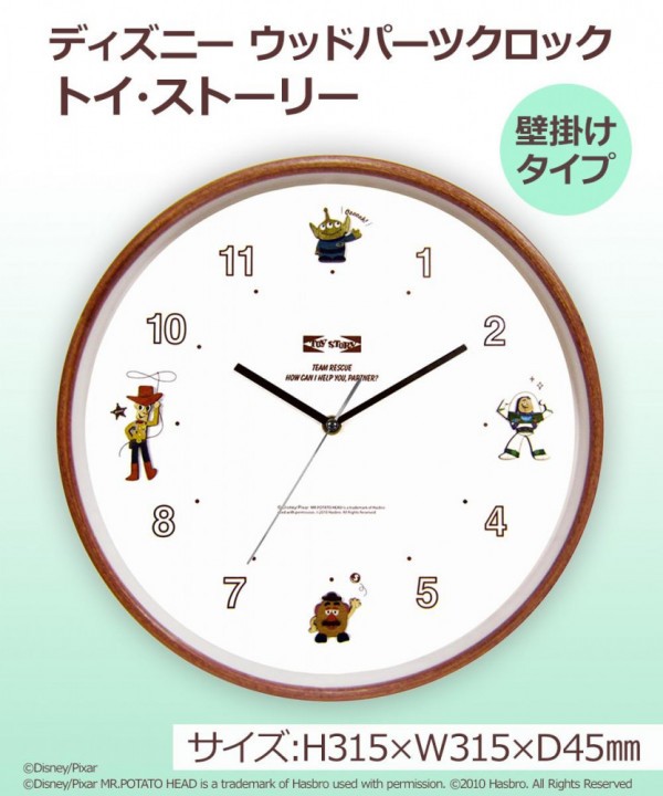 | 落ち着いたウッド調でどのお部屋でも飾りやすいデザインです。文字盤にトイ・ストーリーのキャラクターたちがいるので、見てるだけでも楽しい☆カチカチならないスイープタイプのムーブメントなので、時計の針の音が気になる方にもオススメです!! |