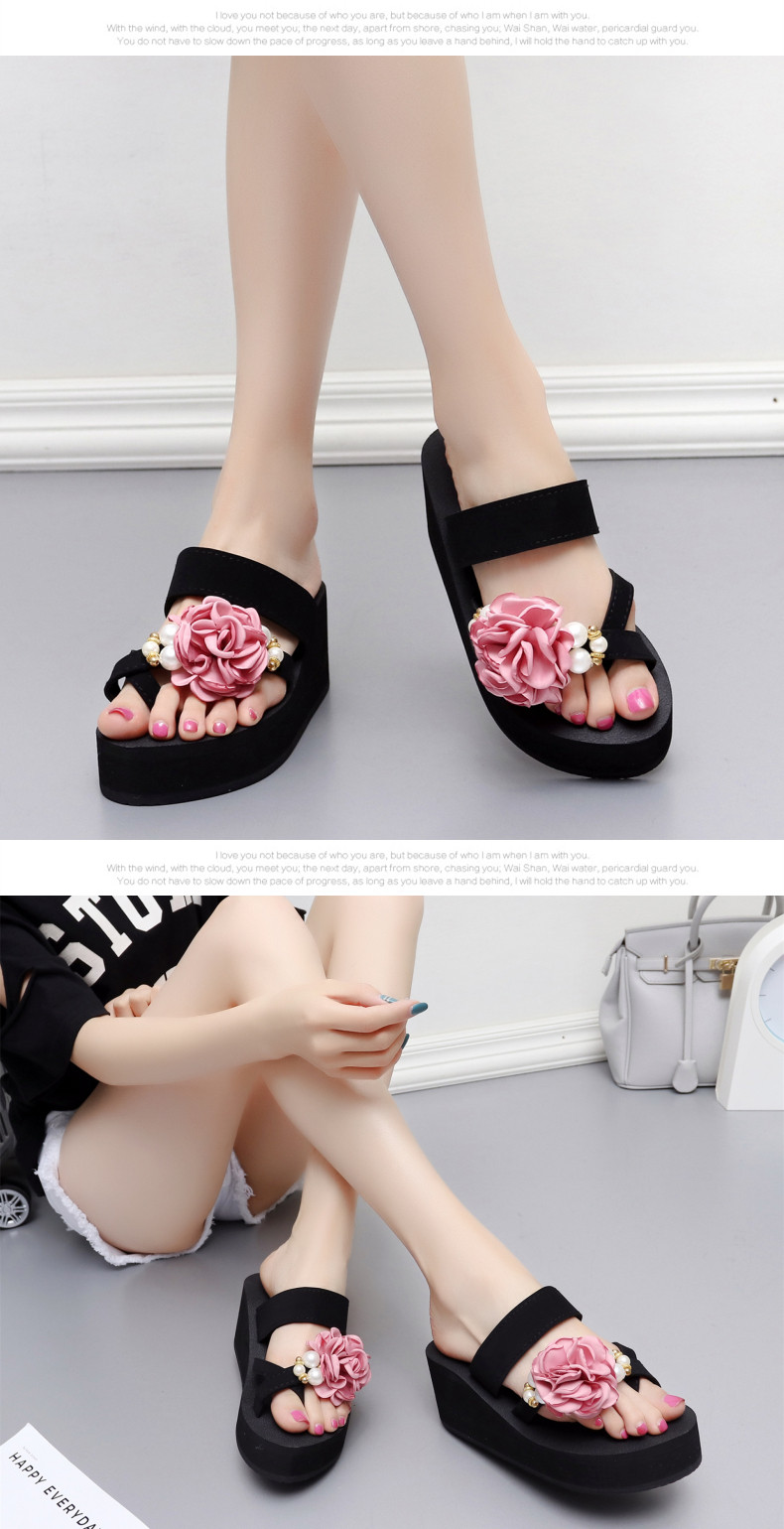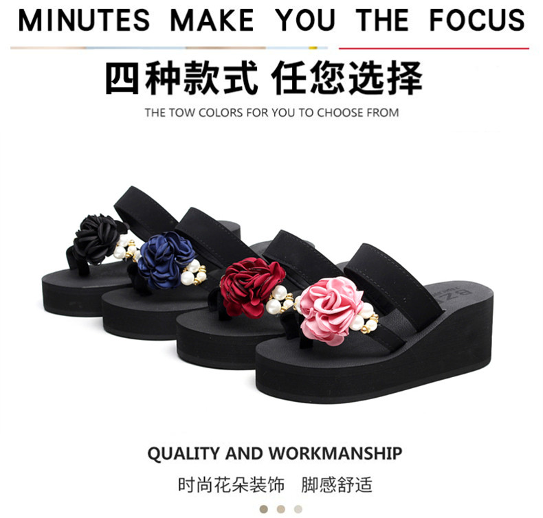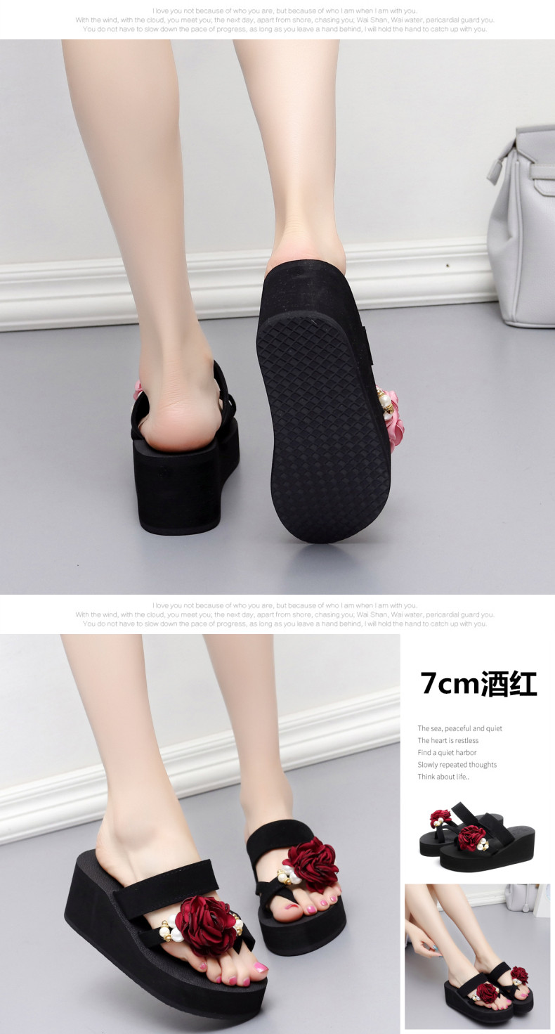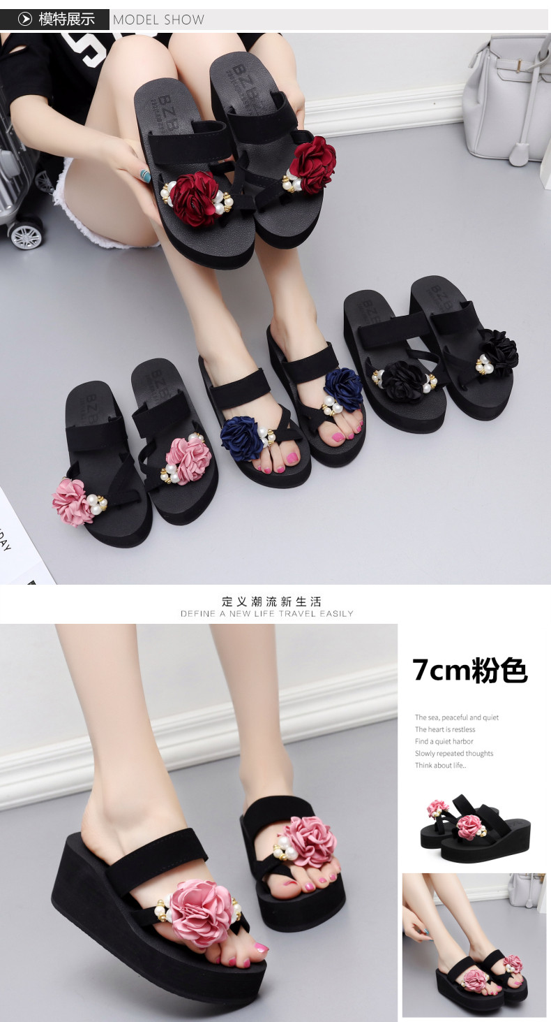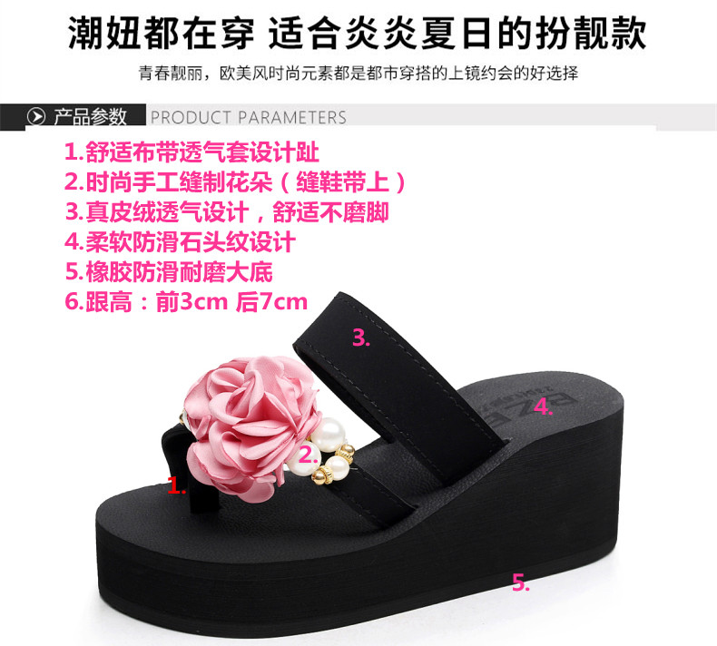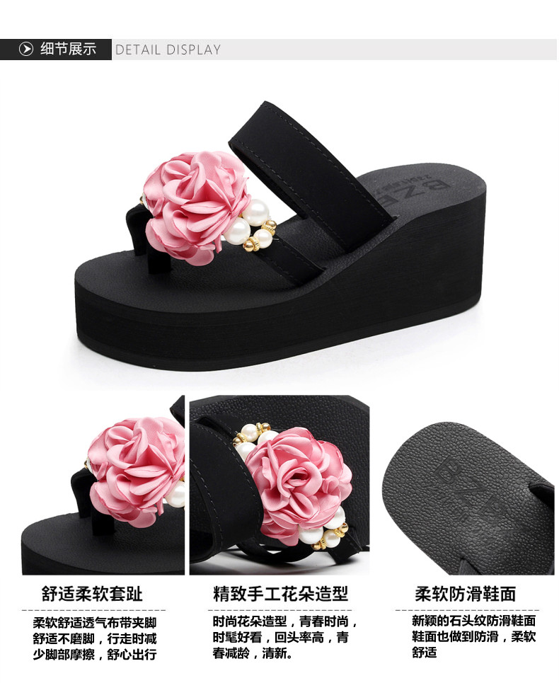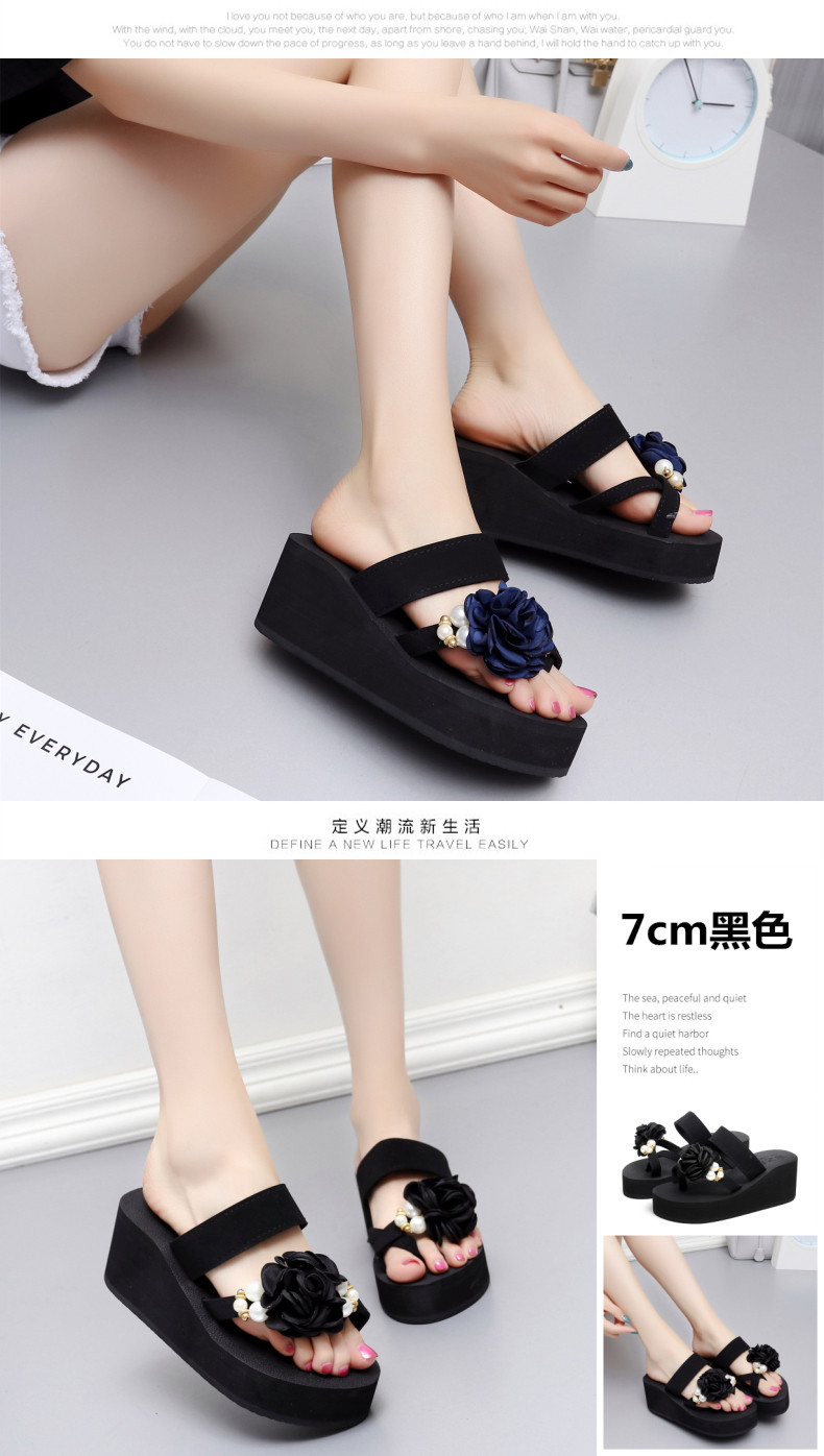 外穿时尚松糕鞋高跟花朵沙滩鞋厚底防滑人字拖韩版坡跟凉拖鞋女夏