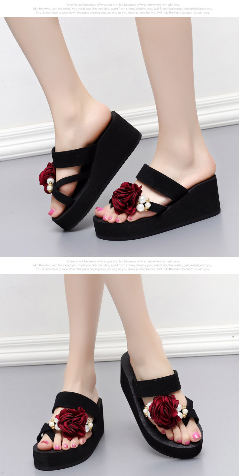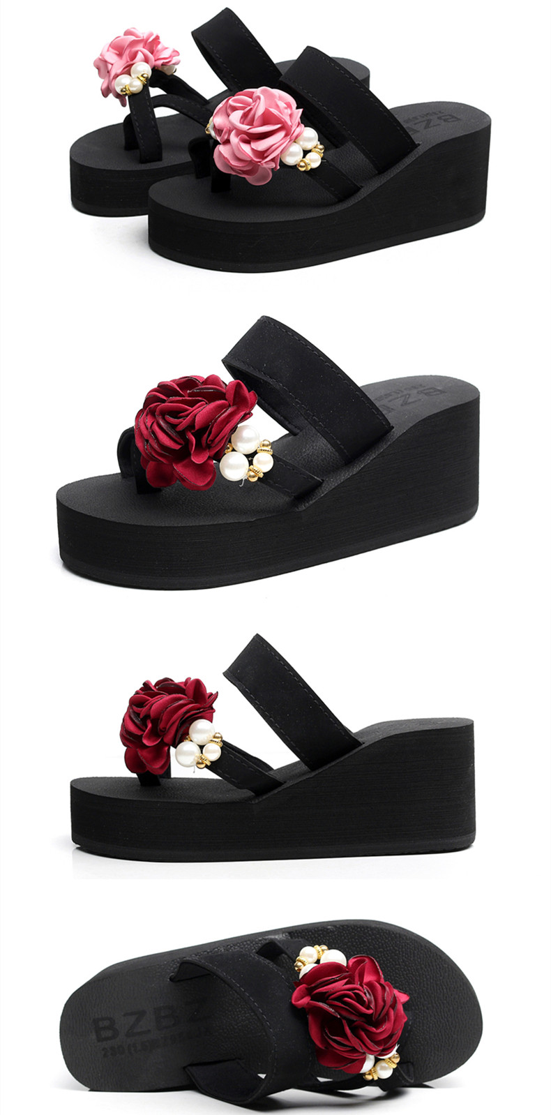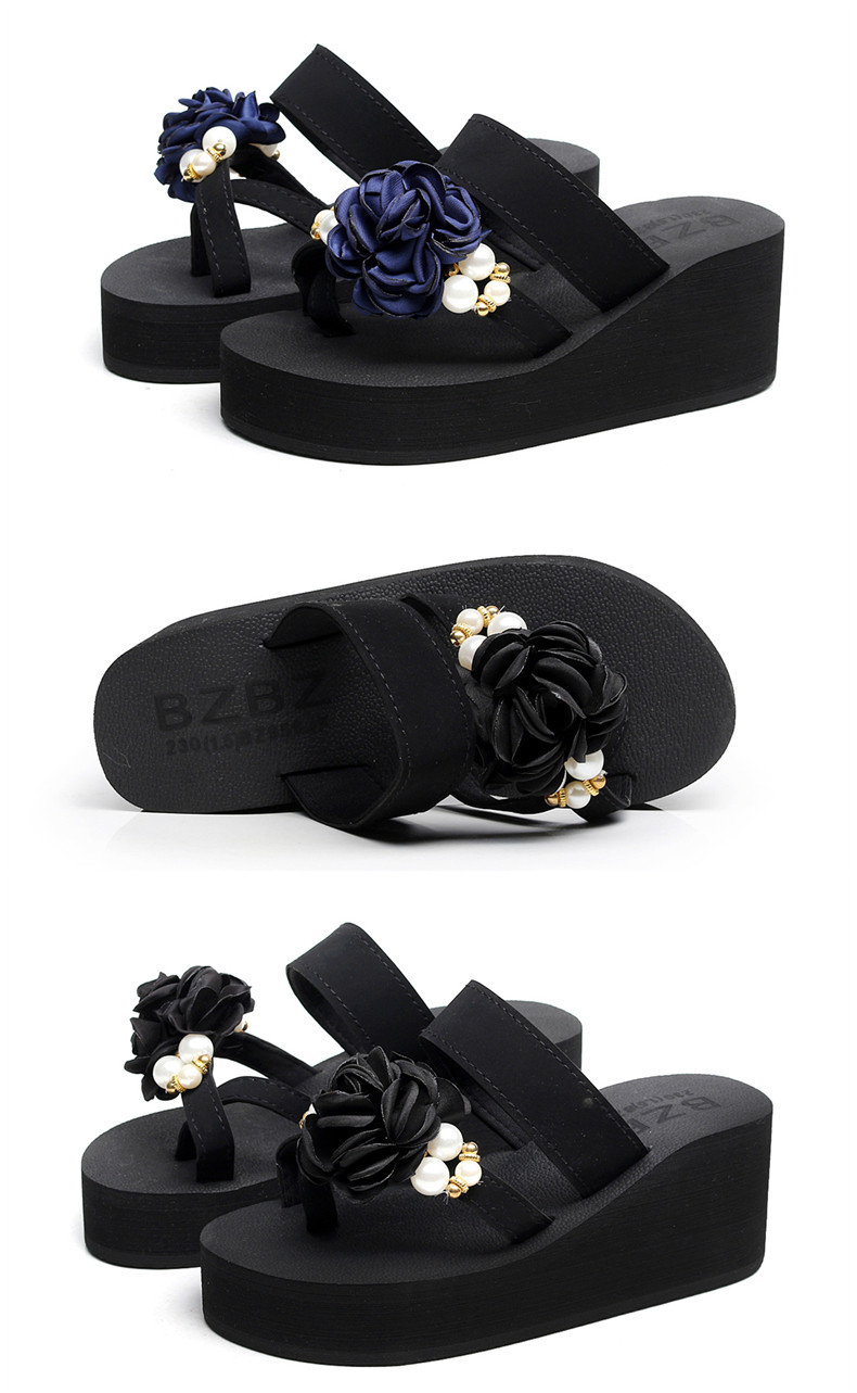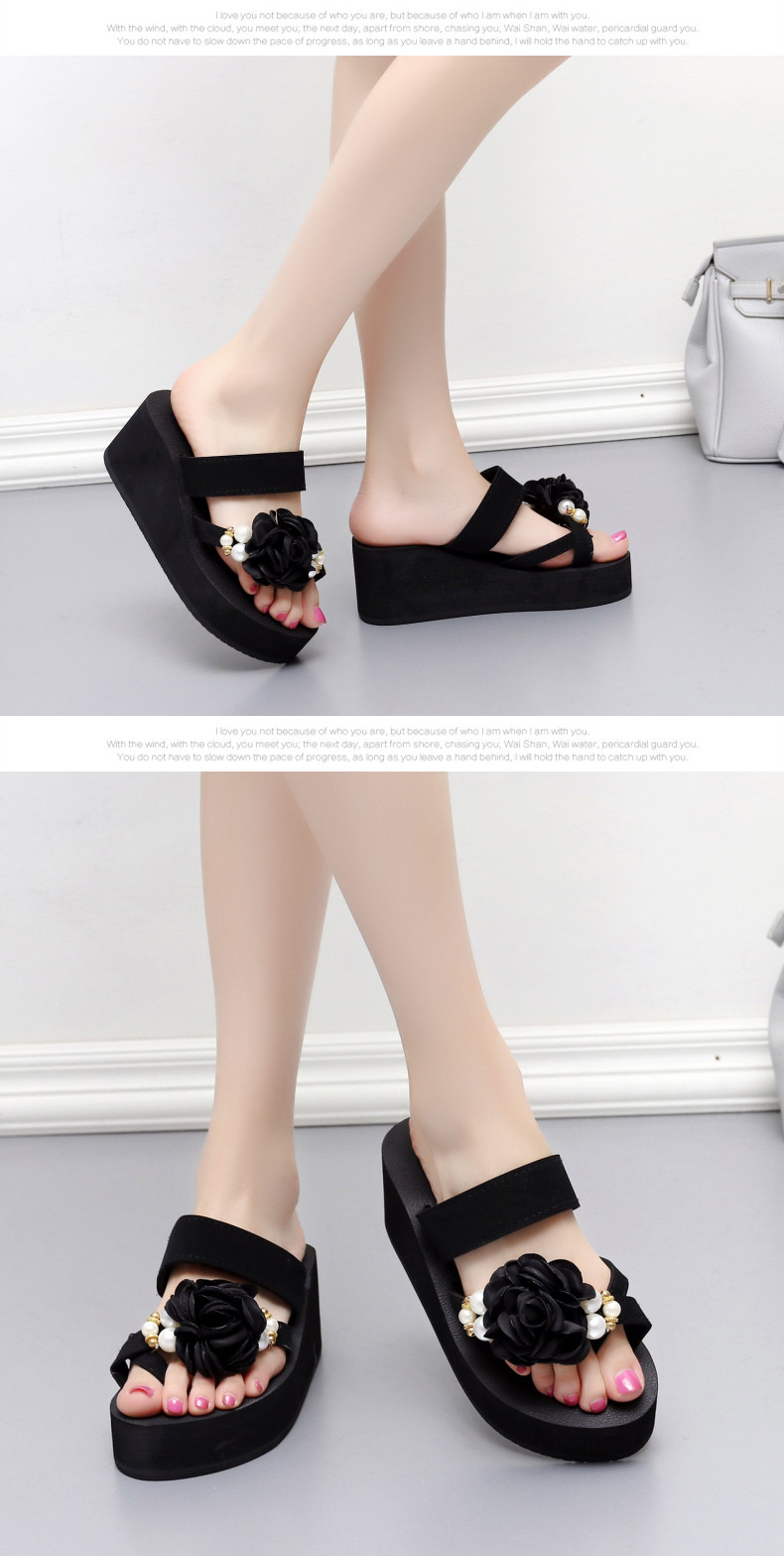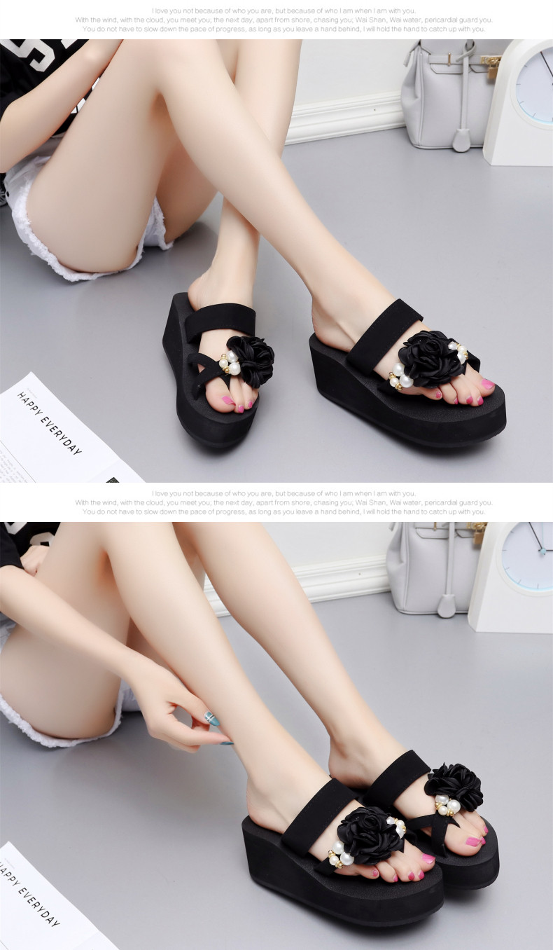外穿时尚松糕鞋高跟花朵沙滩鞋厚底防滑人字拖韩版坡跟凉拖鞋女夏
