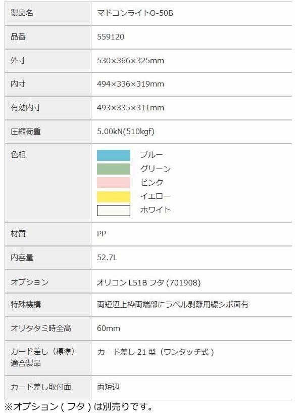 ※ただし、オリコンP31B、51B、51B-B、サンクレットオリコンラック50B-C(長短側扉あり)-Bは嵌合不可