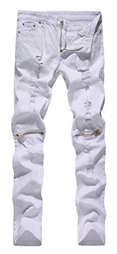 -. Title : NITAGUT Men's Skinny Ripped Destroyed Slim Straight Fit Zipper Jeans With Holes