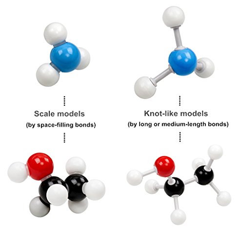 The atoms of 12 different elements and flexible bonds help you build model organic structures, cyclic compounds, or stereoisomerism, etc. Students of all kinds will find it funny and helpful in studying molecular geometry. A great hands-on way to learn! Specification: Material: PP(Atoms); LDPE(Bonds); ABS(Box) Atoms of Chemistry Elements: Hydrogen, Carbon, Oxygen, Nitrogen, Sulfur, Phosphorus, Fluorine, Chlorine, Bromine, Iodine, Metal and Boron Bonds: 25 long flexible bonds (for double and triple bonds) 60 medium-length hard bonds (for single covalent bonds) 60 short single bonds (for compact single covalent bonds) 8 short double bonds (for compact double covalent bonds) Size: Hydrogen Atoms: Diameter 17mm ; Other Atoms: Diameter 23mm Weight: 21.16oz (600g) Package Included: 1.Atoms x 86 2.Bonds x 153 3.Molecular Tool x 1 4.Instruction x 1 5.ABS Box x 1 0