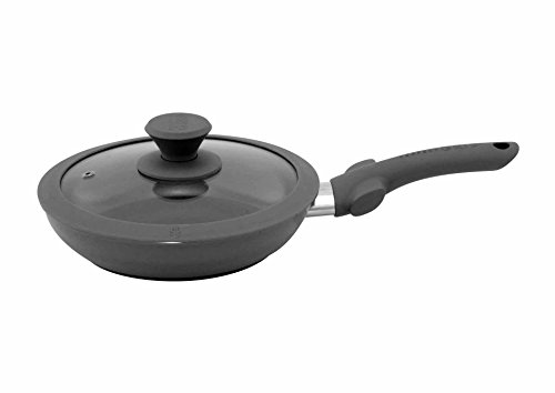 Get a grip with CeraStone's Titanium Perfect Grip 8.5 inch fry pan. The sleek black TPR, ergonomically designes handle utilizes your thumb for a sturdier, more comfortable grip and is even heat resistant. Use this pan safely on any cook top and never worry about harmful chemicals sneaking into your meals.