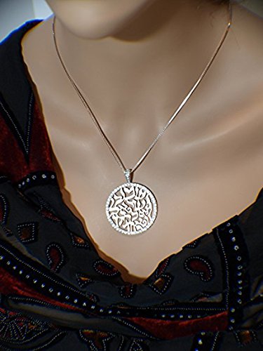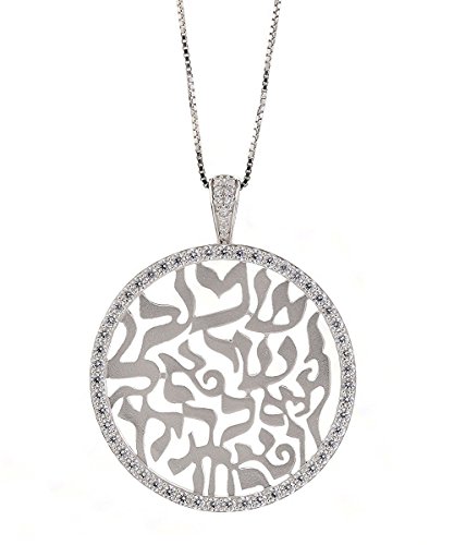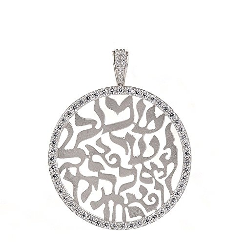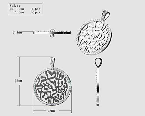 This Beautiful Shema Israel Blessing pendant is made of Sterling Silver and is Platinum Plated. It is 28mm Diameter by 36mm including the Bail and is 2.1mm Thick. It is Like a Quarter size. For more information, please view the CAD image on this listing. It has Pure Brilliance Swarovski Zirconias set on the Bezel and the Bail. It includes a 1mm 22" Adjustable Box Chain. Any Questions, please call us at -800-709-9445 Monday to Saturdays, 10am to 6pm central time