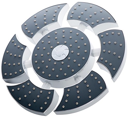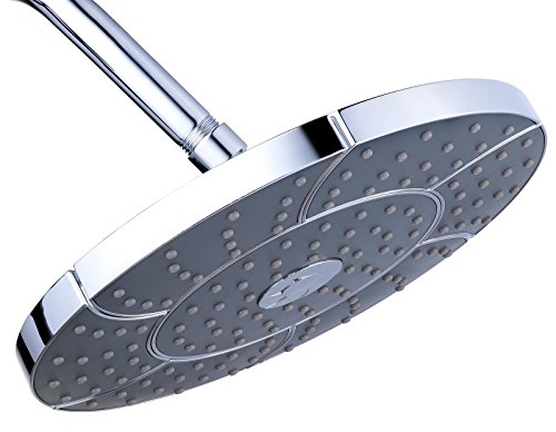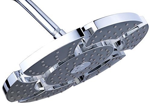 UNIQUE EXPANDABLE DESIGN - Wide 10” showerhead; expandable to extra-wide 12” to deliver a shoulder-to-shoulder, rainfall-style water flow that targets the entire body. / Made with ABS material with chrome finish