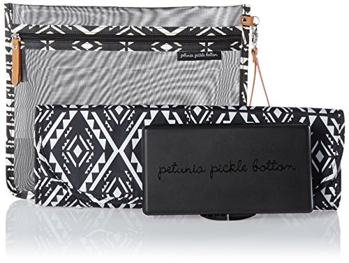 • Diaper changing kit contains PPB-monogrammed wipes case, printed changing pad and space to stow a couple diapers and other small diapering essentials