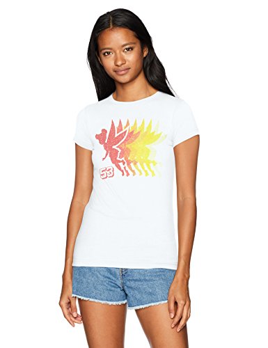 Peter pan may always lose his shadow, but tinker bell never lets her shadow out of her sight when she's wearing the Disney tinker bell rainbow shadow graphic tee! this cute fitted white tinker bell shirt shows the pixie with an ombre distressed shadow that fades from red to green across the front.Feature