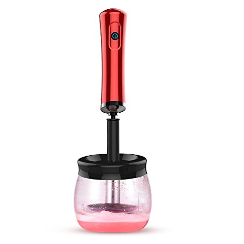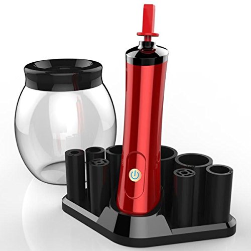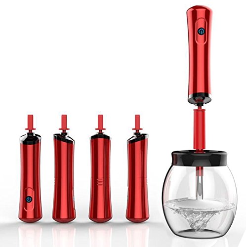 Makeup Brush Cleaner and Dryer, YISCOR Electronic Automatic Cosmetic Makeup Brush Cleaner Tool Machine Spinner With 1 Base and 8 Collars (Red)