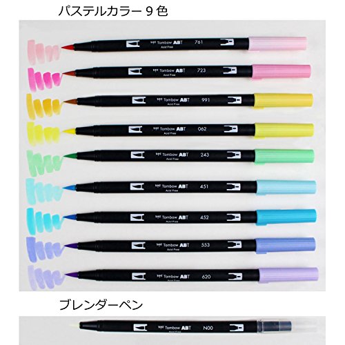 やわらかい色合いパステルカラー9色と無色のブレンダーペンの10本入りセット。
