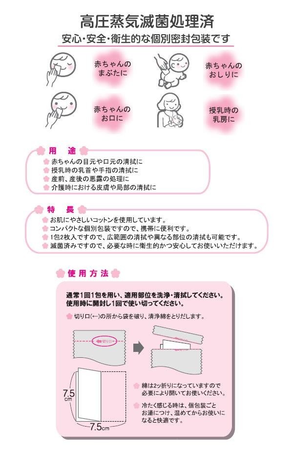 ※医薬部外品です。 ※本品1包は、脱脂綿1.125gに成分溶液6.5mlを吸着したものです。 ※記載の内容は、改良のため変更になる場合がありますのでご了承ください。 |