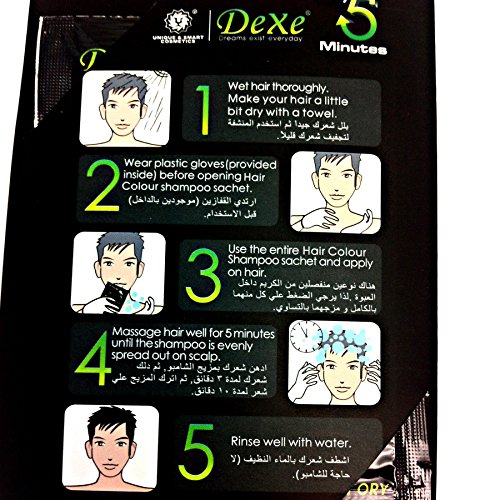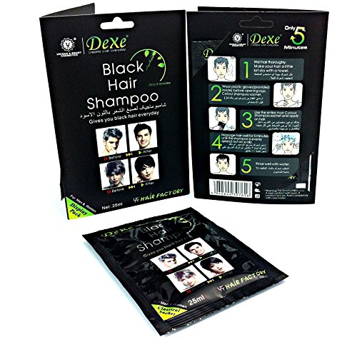 -. Binding : Office Product -. Brand : Dexe -. Color : Black -. EAN : 6942644307616 -. Feature : New DEXE Black Hair Shampoo Products / 1. Convenient - Similar to shampoo, but to cover your gray hair or blacken them. / 2. Save Time - Only one packet can give you shinny black hair in 5 minutes. / 3. Save Money - Dyeing hair in the hair salon, but now the magic hair black shampoo is convient and do not in your own time and home. Saving you a ton of time and money. / 4. Natural - Made with Chinese herbal extracts and French medicine extracts that give you healthy and natural looking black hair color. -. IsAdultProduct : 0 -. Label : Sure Luxury -. Manufacturer : Sure Luxury -. MPN : 2933582 -. NumberOfItems : 20 -. PackageQuantity : 1 -. PartNumber : 2933582 -. ProductGroup : Beauty -. ProductTypeName : OFFICE_PRODUCTS -. Publisher : Sure Luxury -. Studio : Sure Luxury -. Title : Instant Hair Dye - Black Hair Shampoo - (3) Black Color - Simple to Use - Last 30 days - Natural Ingredients!
