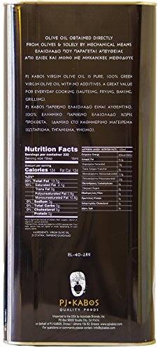 2016/17 FRESH Harvest PJ KABOS Greek Virgin Olive Oil X-LARGE 1.32 Gallon Tin (169Floz) | Great value for everyday cooking | Pure, 100% Greek Virgin Olive Oil